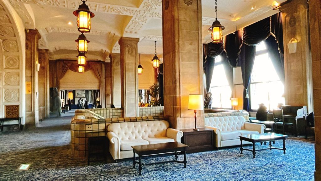 The grand staircase on the second floor and the spacious historical areas create an atmosphere that feels like stepping back in time, offering a cinematic experience that evokes elegance and grandeur.