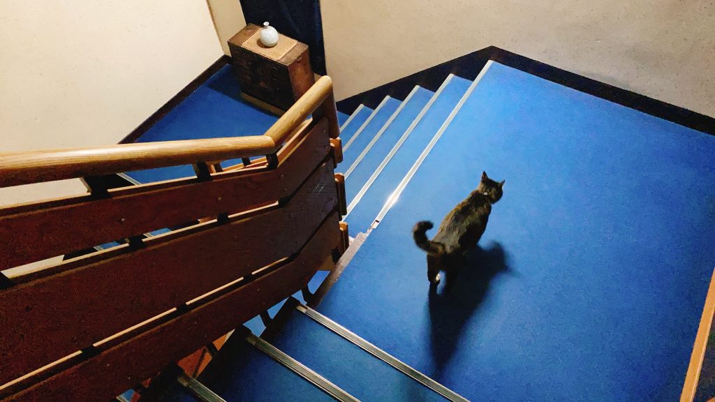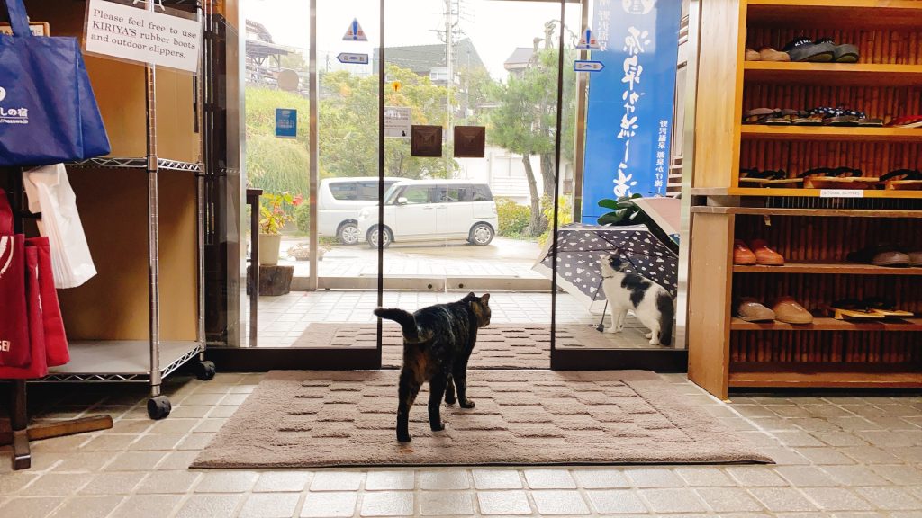Sometimes the cats even come to the changing room when we are about to enter the hot spring after dinner at the ryokan. They probably like the temperature and humidity of the hot springs.