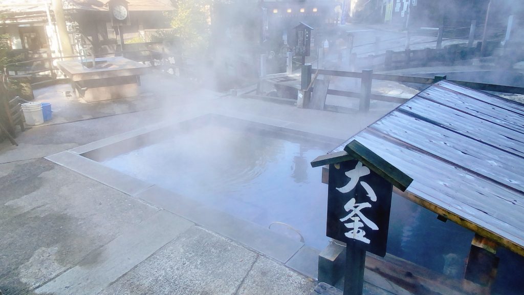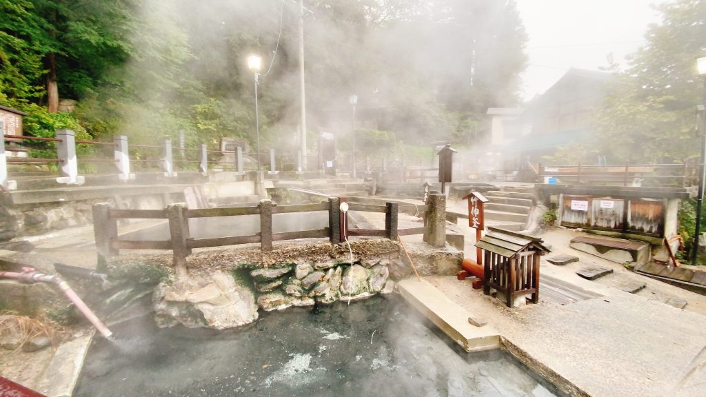 Near the ryokan is a footbath and a small store, as well as Nozawa Onsen’s famous “Ogama,” where steam clouds are rising and it is a good place to take a walk.