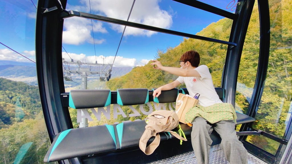 The colorful autumn leaves seen while riding the gondola lift are exceptional.