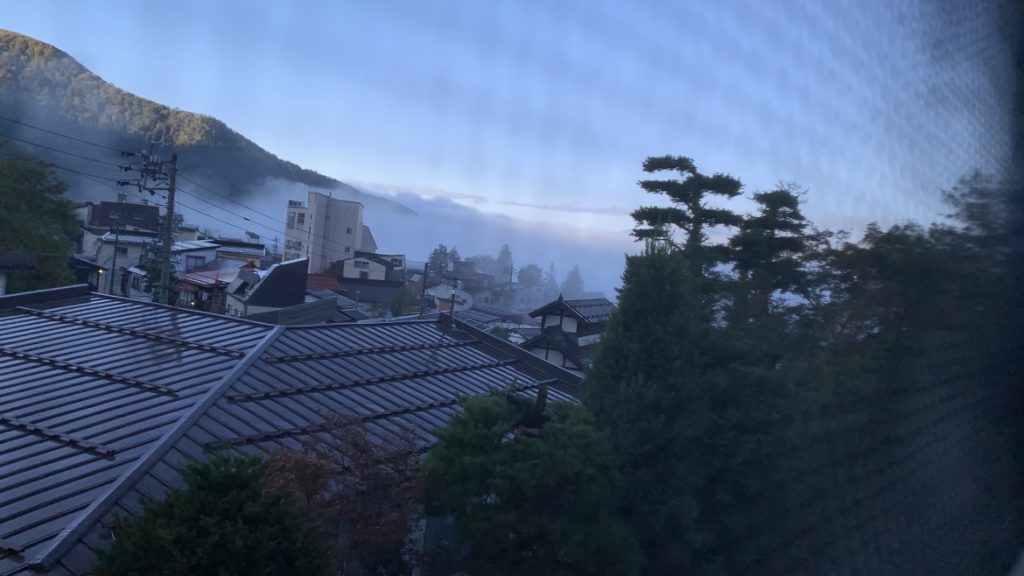 When I woke up in the morning, to my surprise, I saw a sea of clouds covering the town of Nozawa Onsen outside my window.
