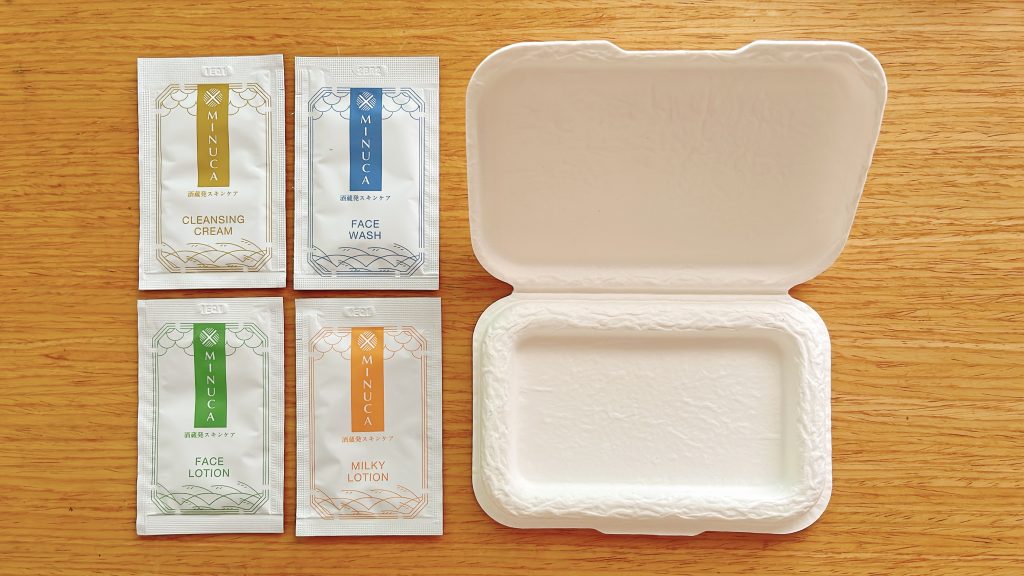 MINUCAには、米糠エキス、米ぬか発酵液、大豆発酵液、ハトムギ種子エキスなど、4つの保湿成分が含まれています。また、合成着色料や鉱物油系界面活性剤を使用せず、植物由来の天然成分と日本酒を使用しています。