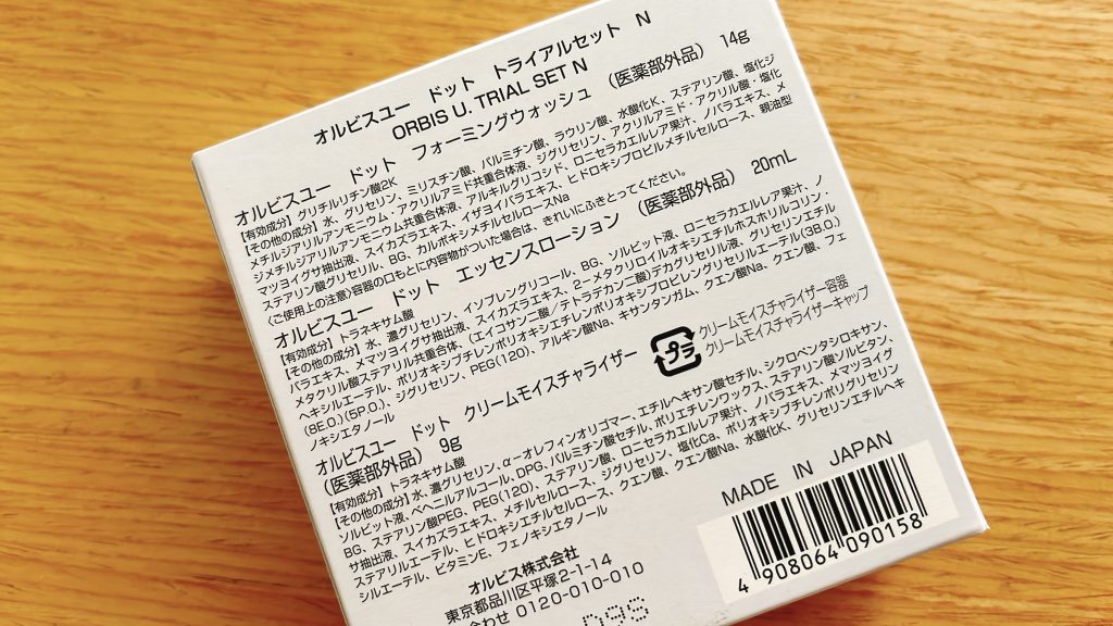 Normally, the “face wash, toner, and cream” set alone costs 1,760 yen, but this “ORBIS YOU 7-Day Trial Set” includes a “water-absorbing arm band” that solves the problem of water running down your arms when washing your face and getting your sleeves and floor wet, for 980 yen, which is quite reasonable(as of March 2025.3).