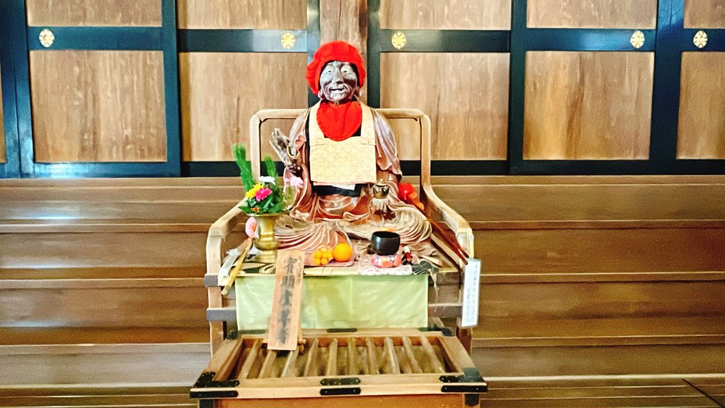 法堂正面の階段の所には、地元の人から「おびんずる様」と親しまれている「なでぼとけ(賓頭盧尊者)」が鎮座しています。